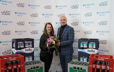 Zur Feier dieses außergewöhnlichen Meilensteins spendierten die drei Gründungspartner der Barclays Arena - Coca-Cola, Carlsberg und hella Mineralbrunnen - der glücklichen Gewinnerin ein besonderes Geschenk: 20 Kisten Getränke der drei Marken.